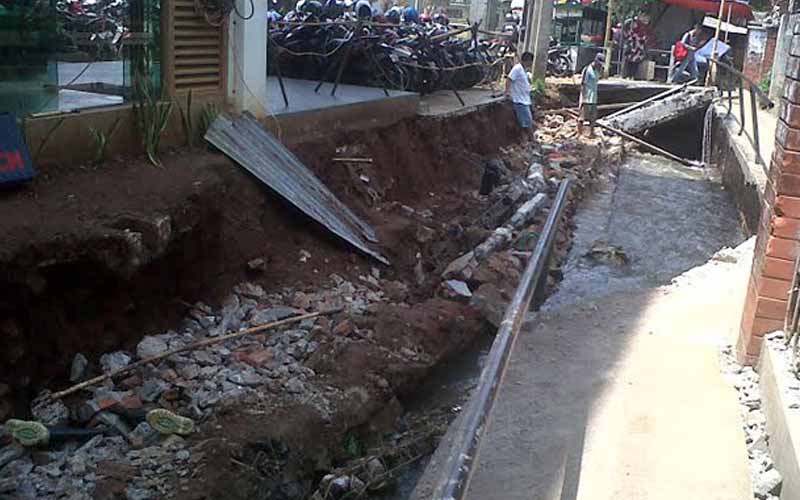 Pantauan di lokasi, titik longsor berada di dua lokasi yakni di depan sekolah Izzata dan Arjuna serta di jalan sekitar Jembatan Serong, Depok.