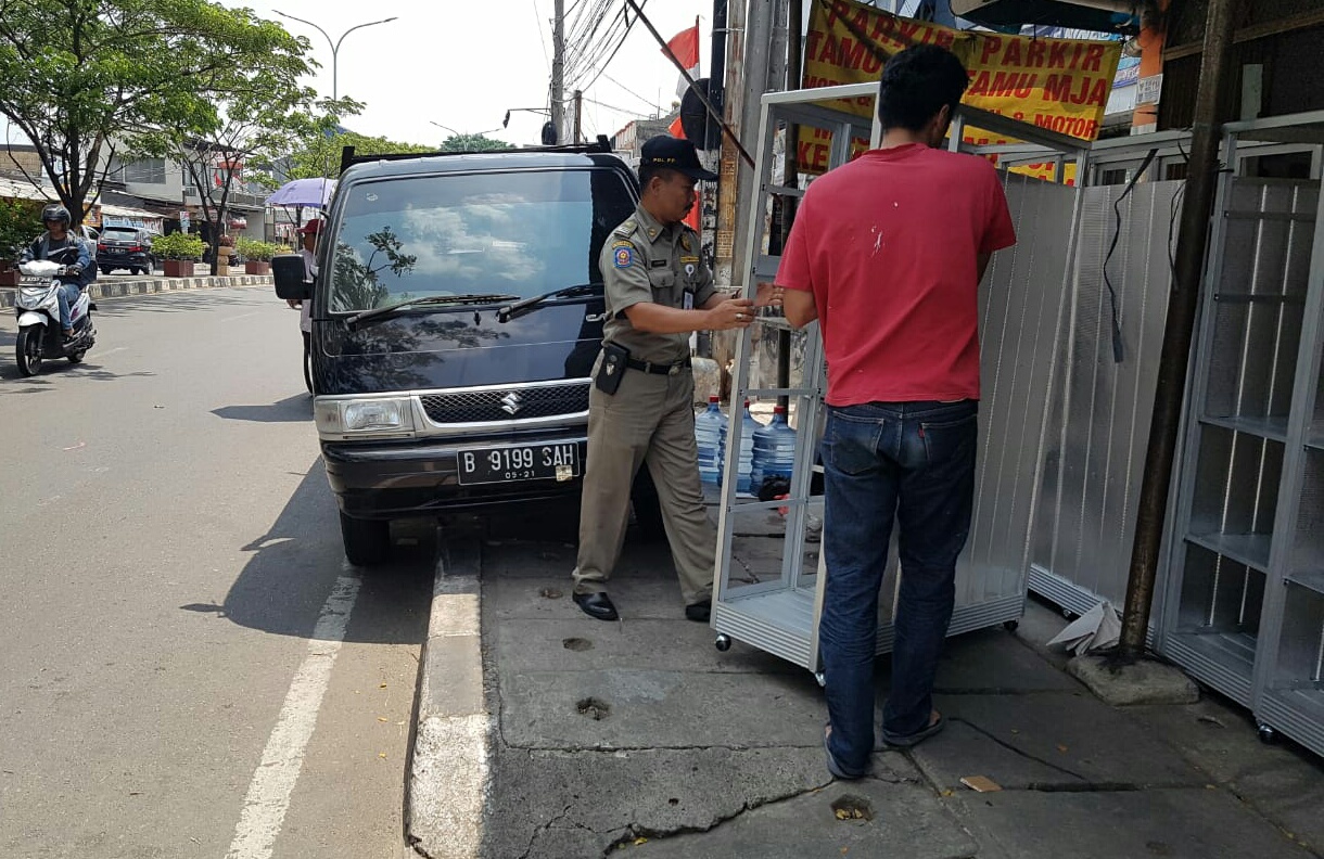 Harian Sederhana – Petugas Satuan Polisi Pamong Praja (Satpol PP) Kota Depok mendatangi pelaku usaha di sepanjang Jalan Arief Rahman Hakim (ARH) dan Jalan Nusantara di wilayah Kelurahan Depok Jaya, Kecamatan Pancoran Mas, Koya Depok.