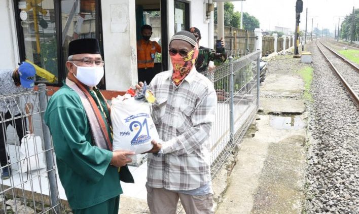 Harian Sederhana, Depok – Wali Kota Depok, Mohammad Idris memberikan paket sembako kepada penjaga pintu perlintasan Krl di Jalan Dewi Sartika dan petugas Rumah Sakit Umum Daerah (RSUD) Kota Depok di Jalan Muhtar, Kecamatan Sawangan.