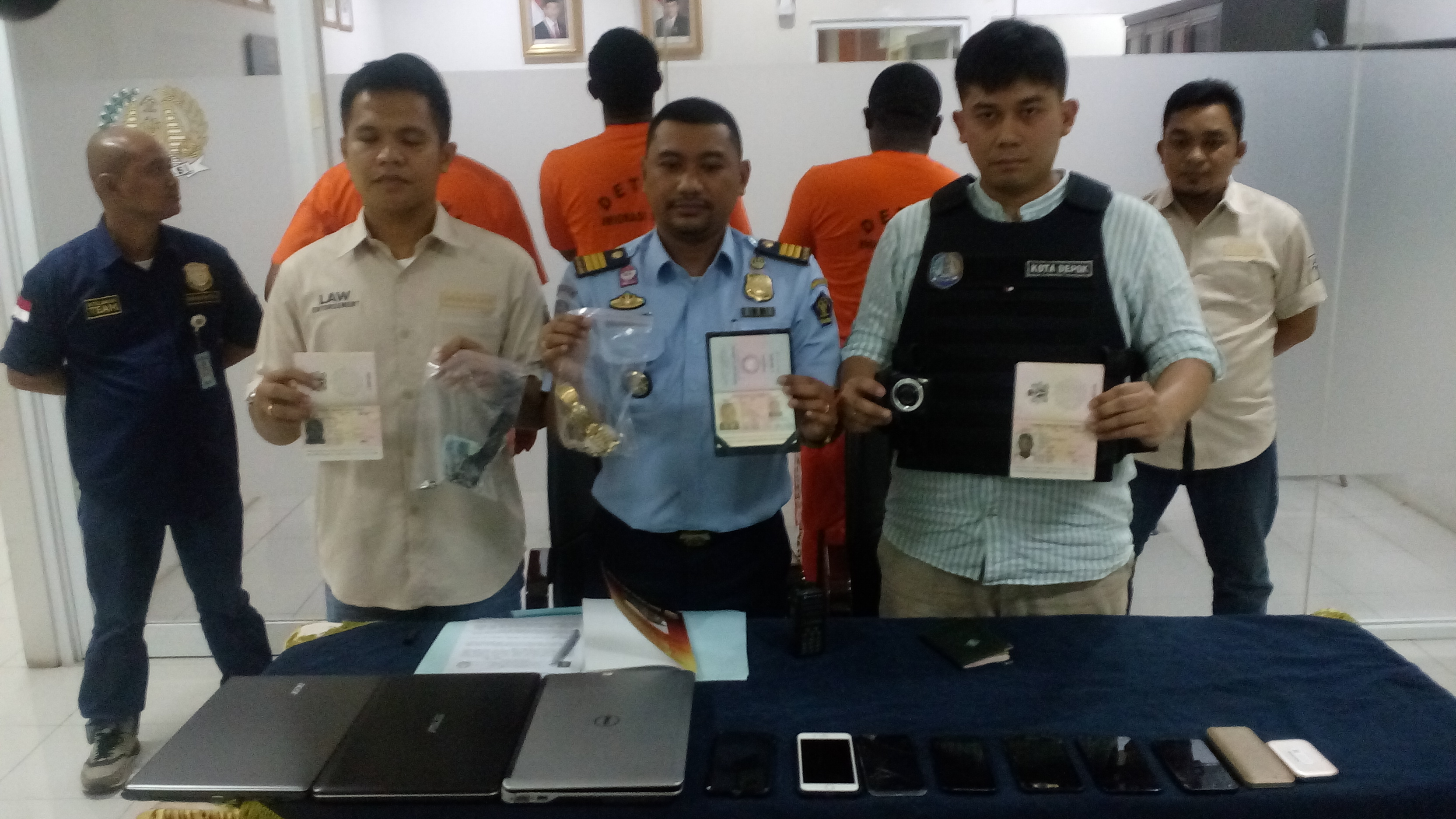 Selain mengamankan ketiga warga asing tadi, petugas juga mengamankan sejumlah barang bukti. Diantaranya, tiga laptop, tujuh ponsel, satu kamera, dua jam tangan, dan sejumlah dokumen. Terkait dengan sederet temuan barang elektronik tadi, petugas pun bakal melakukan penyelidikan lebih dalam.