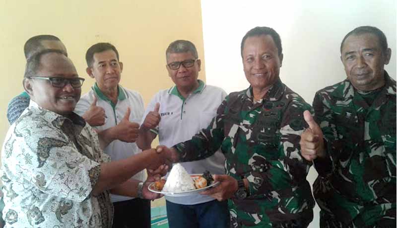 Suasana penyerahan tumpeng dari warga kepada TNI.