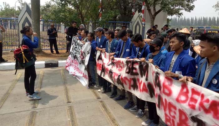 Harian Sederhana, Bekasi – Peringatan Hari Jadi ke-69 Kabupaten Bekasi disambut aksi demonstrasi puluhan mahasiswa yang tergabung dalam Badan Eksekutif Mahasiswa (BEM) se-Kabupaten Bekasi. Para pengunjuk rasa meminta Bupati Bekasi, Eka Surpria Atmaja serius menjalankan roda pemerintahan.