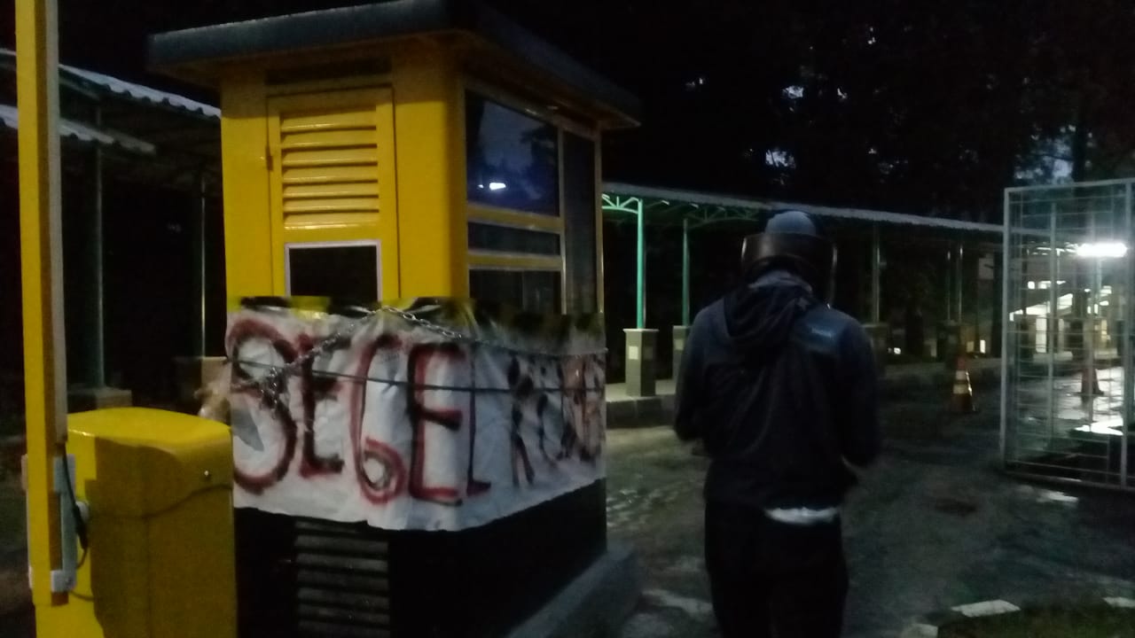 Penyegelan dilakukan sejumlah mahasiwa Politeknik Negeri Jakarta (PNJ). Aksi para mahasiswa ini bukan tanpa alasan. Sebab kampus mereka yang berada di kawasan UI itu ikut terdampak atas kebijakan tersebut.