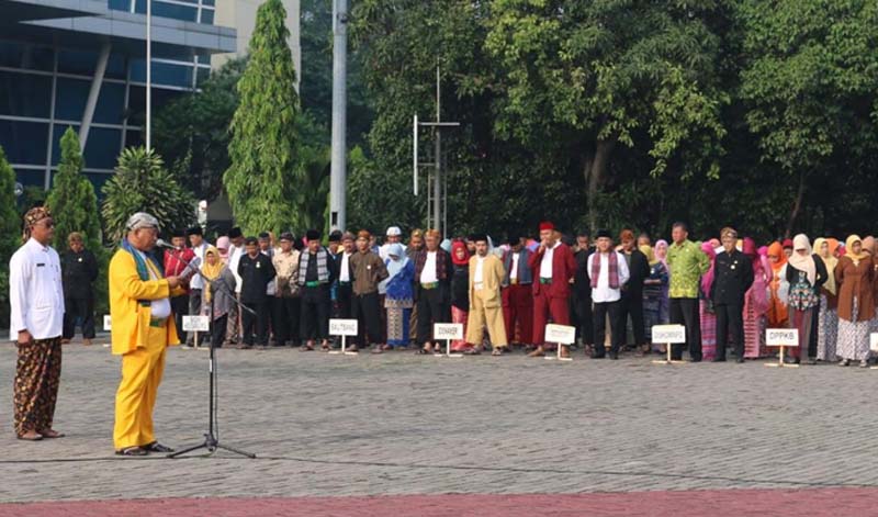 Tampak pada peringatan Hari Bela Negara kali ini, seluruh unsur Forkopimda, ASN dan Non ASN mengenakan pakaian adat.