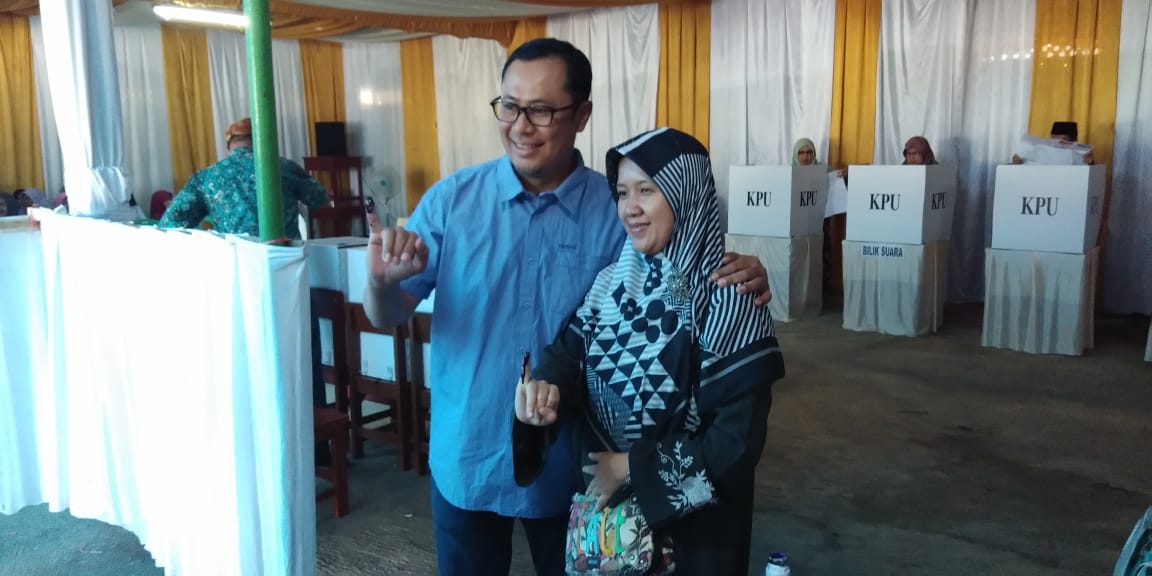 Wali Kota Sukabumi Achmad Fahmi mendatangi Tempat Pemungutan Suara (TPS) 38 bersama istri. (FOTO : M. Satiri/Harian Sederhana)